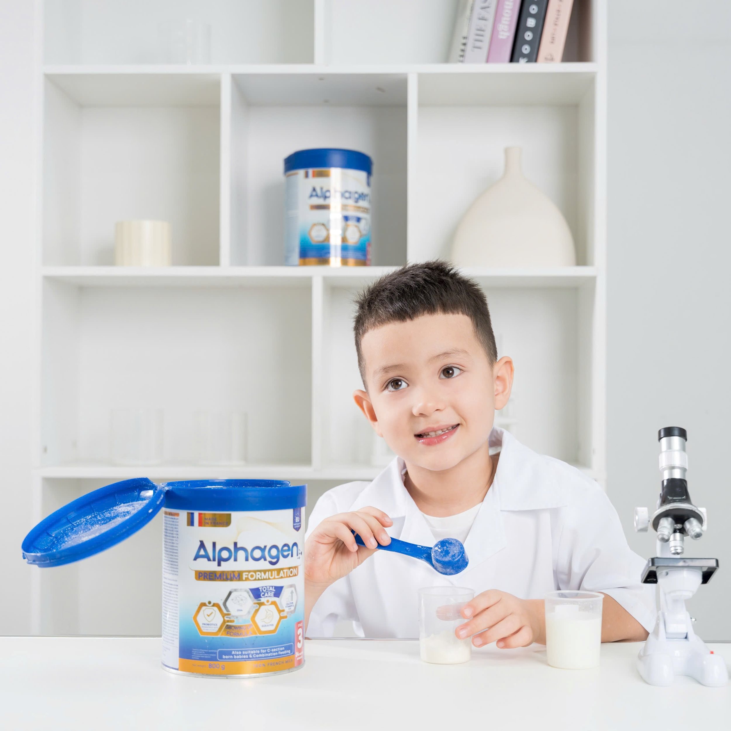 Thấu hiểu mong muốn con cao lớn khỏe mạnh của các mẹ bỉm, thương hiệu Alphagen cũng nghiên cứu và bổ sung các vi chất giúp bé phát triển đều đặn về nhiều mặt.