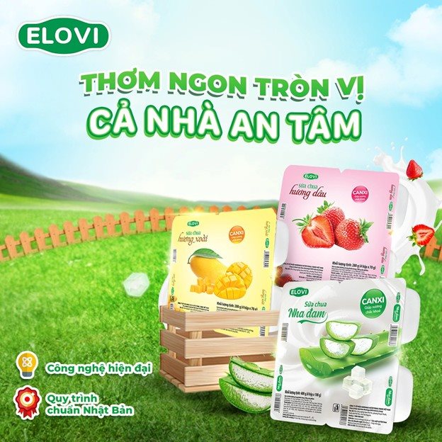 Elovi, cũng là sữa chua ăn, ghi dấu với danh mục hương vị đa dạng như có đường, dâu, xoài và nha đam, mang lại trải nghiệm quen thuộc, dễ sử dụng cho nhiều lứa tuổi trong gia đình. Elovi duy trì hình ảnh sữa chua ăn quen thuộc cho gia đình, với danh mục hương vị đa dạng và có bổ sung canxi, đáp ứng nhu cầu sử dụng thường xuyên trong bữa phụ hằng ngày.