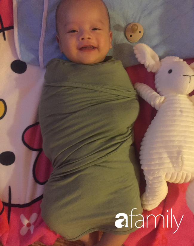 Khi con thường xuyên cáu, khóc, gắt ngủ, chị Hải đã sử dụng quấn chũn cho bé ngủ ngay từ khi mới sinh ra