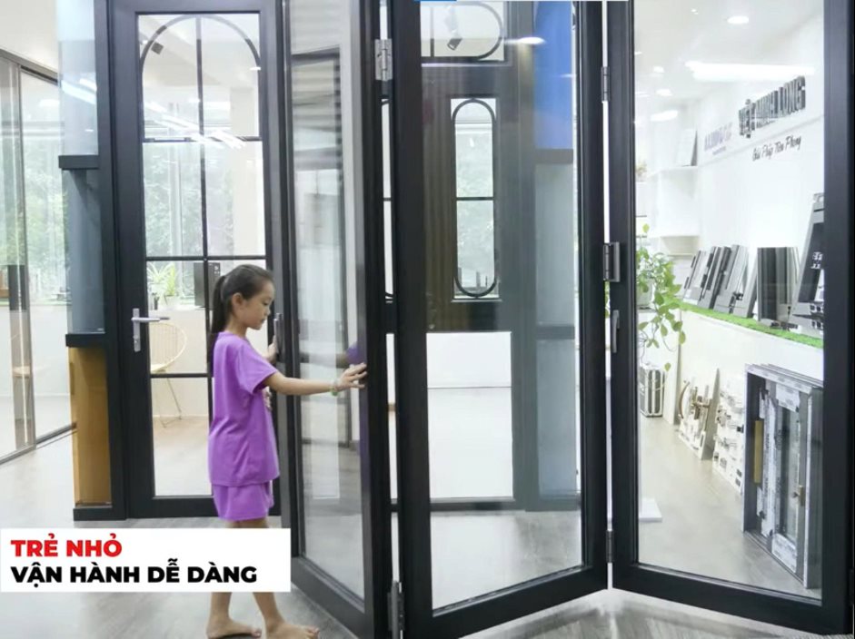 Không chỉ trẻ em, người lớn tuổi trong gia đình chị Hân cũng sử dụng cửa dễ dàng nhờ thiết kế vận hành nhẹ, không cần dùng nhiều lực. Điều này giúp sinh hoạt trong gia đình trở nên thuận tiện và an toàn hơn.
